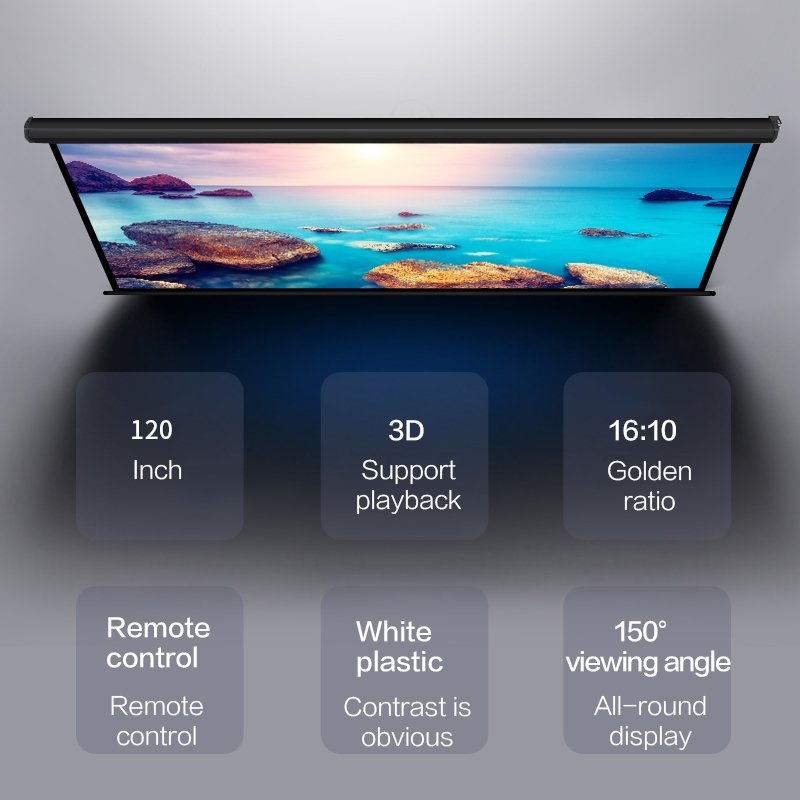Experience superior visual clarity with the Deli Projection Screen 50443, designed for professional presentations, home theaters, and educational environments. This motorized projection screen offers effortless control with a remote range of up to 20 meters, allowing smooth and silent operation at the touch of a button. The large 120-inch diagonal display and 16:10 widescreen ratio deliver an immersive viewing experience, perfect for HD and widescreen content.