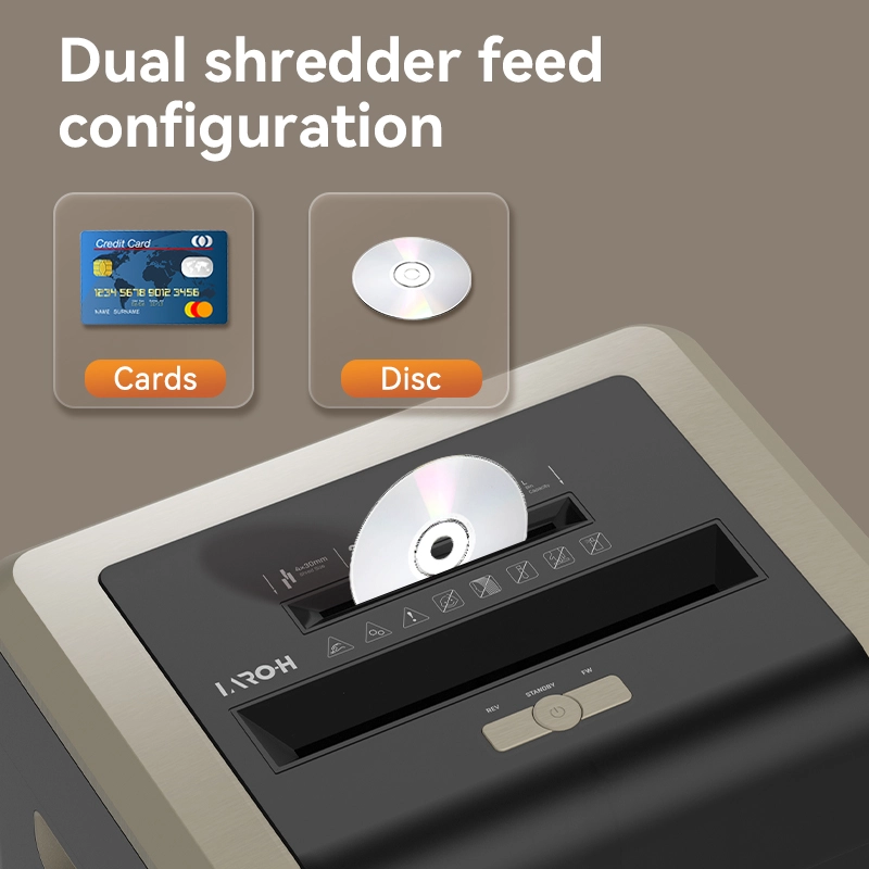 This shredder can handle up to 25 sheets per pass and operates continuously for 30 minutes, powered by a strong 600W motor. Its shredding speed of 2 meters per minute ensures fast and effective performance, helping you tackle large workloads with ease. The dual cutters allow you to shred both paper and CDs, while also accommodating plastic cards and staples, ensuring full versatility in document disposal.