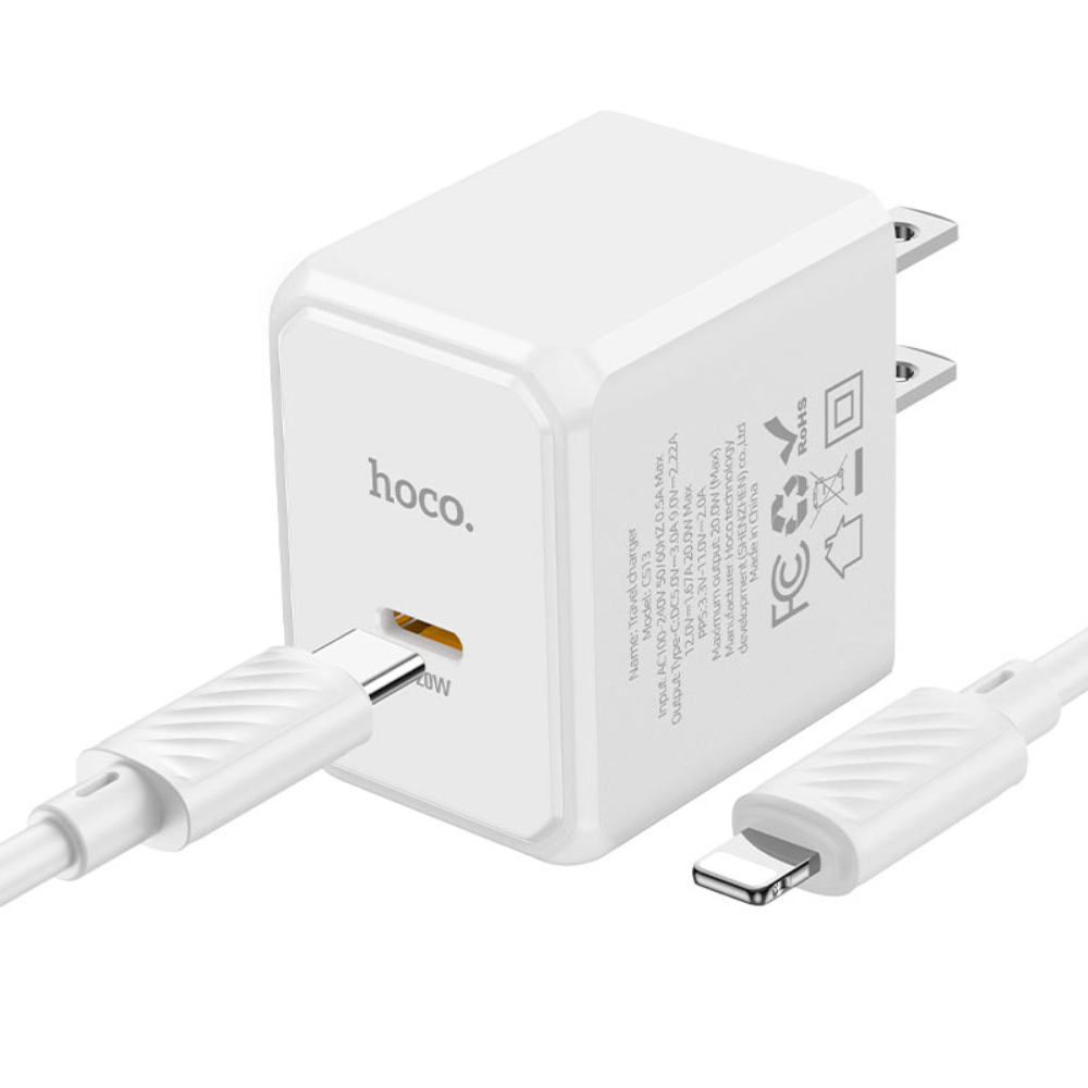 The HOCO CS13 Ocean PD20W Fast Charger is a compact and efficient charging solution designed for modern USB-C devices. Featuring Power Delivery (PD) technology with up to 20W output, it delivers fast and stable charging for smartphones, tablets, earbuds, and other compatible devices.