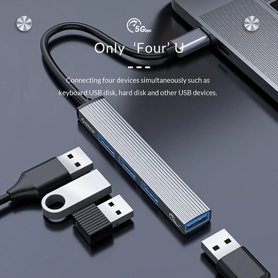 Upgrade your connectivity with the ORICO AH-12F 4 In 1 Type-C to USB 3.0 Hub – Gray, a sleek and powerful solution designed for modern laptops, tablets, and smartphones equipped with Type-C ports. Crafted with precision and elegance, this hub transforms a single Type-C port into four high-speed USB 3.0 ports, giving you maximum flexibility and productivity wherever you go.