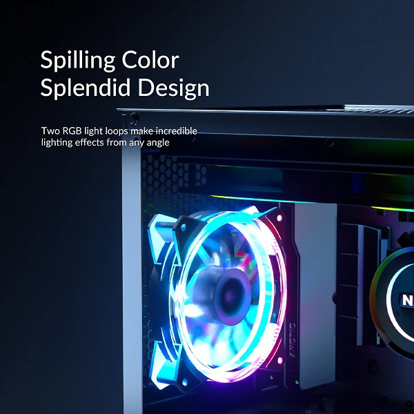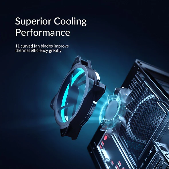 With multi-color RGB illumination, your PC setup comes to life in a spectrum of vibrant colors. The fan’s synchronized lighting effects allow it to blend seamlessly with your case’s existing RGB system, giving your setup a unified and professional aesthetic.
