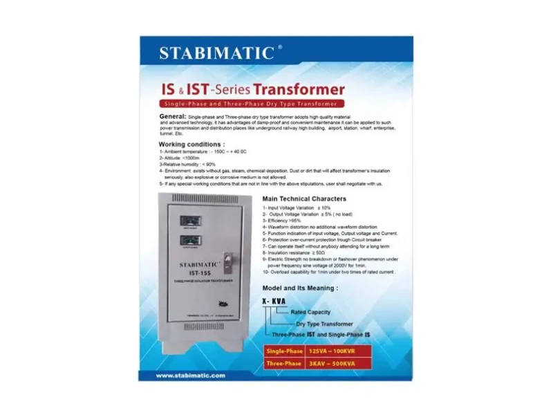 The IST-200 features a robust and durable design, capable of handling continuous operation under demanding conditions. Its energy-efficient construction reduces heat generation and enhances system longevity. With precise voltage regulation and advanced noise-suppression capabilities, the Stabimatic IST-200 is a dependable solution for maintaining power quality and equipment safety.