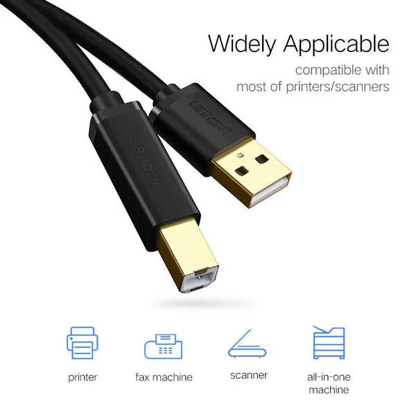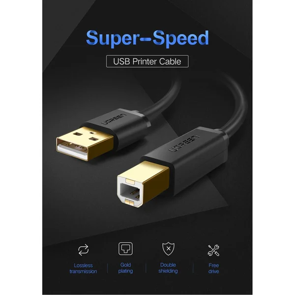 The UGREEN 10328 Printer Cable features a plug-and-play design, requiring no additional drivers for quick and easy setup. It is backward compatible with USB 1.1 devices, ensuring wide compatibility across multiple systems and peripherals.
