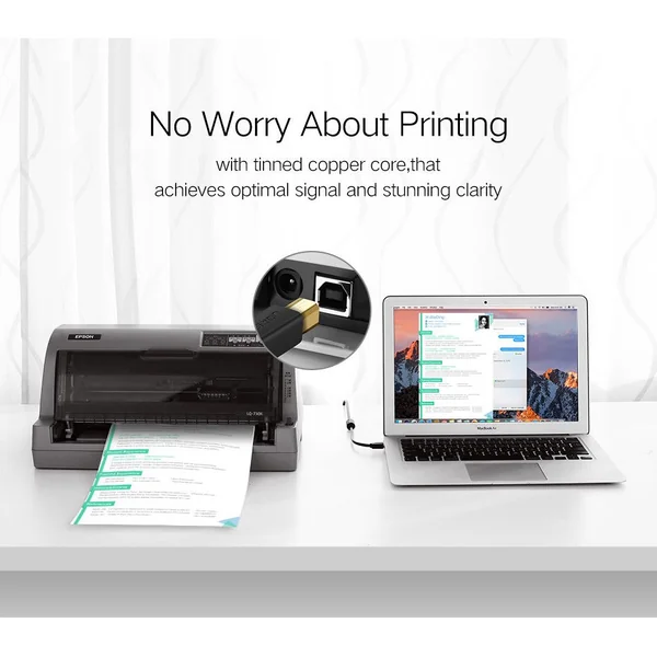 Supporting USB 2.0 data transfer speeds of up to 480Mbps, the cable ensures fast, error-free communication for printing and data transmission tasks. Built with high-quality materials and strong shielding, it minimizes signal interference and provides consistent performance. The durable outer jacket offers flexibility and resistance to everyday wear, making it suitable for both home and office environments.