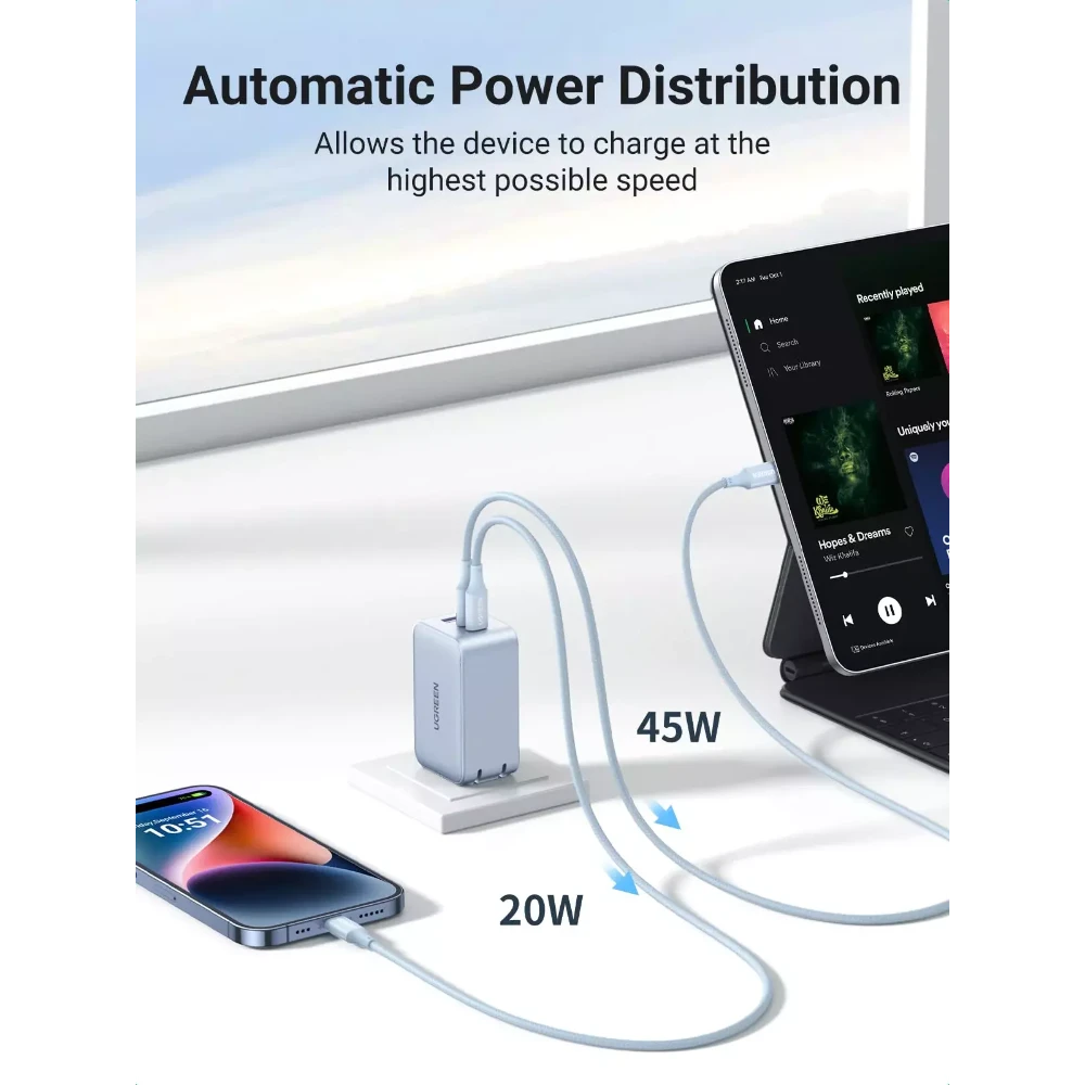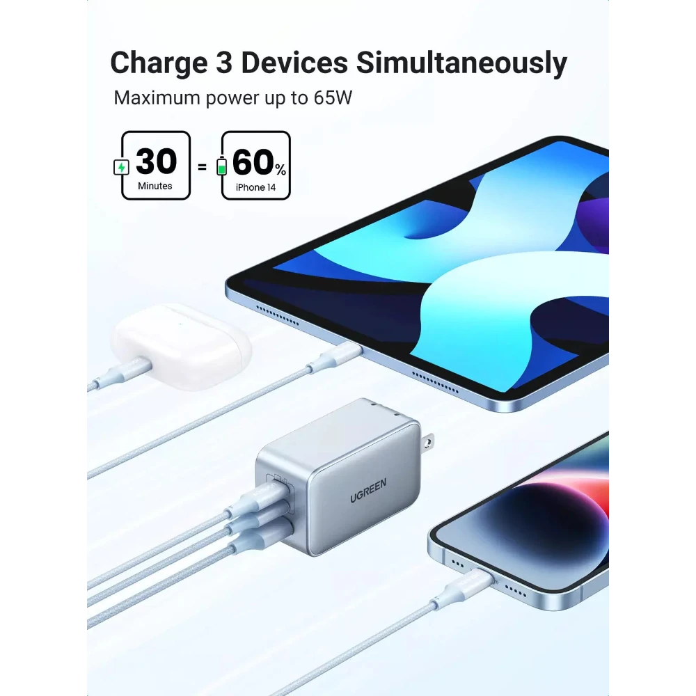 The UGREEN 10334 GaN X 65W Fast Charger is a high-performance charging solution designed to deliver fast, efficient, and reliable power for multiple devices. Featuring advanced GaN X (Gallium Nitride X) technology, this charger offers enhanced power density, improved heat management, and a compact form factor compared to conventional chargers.