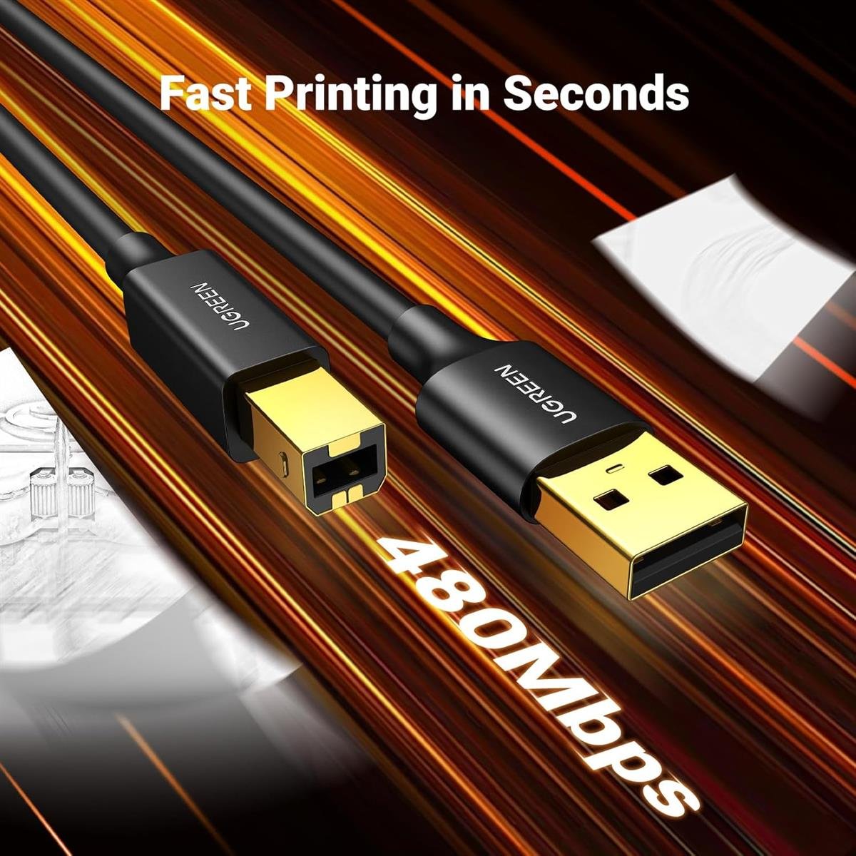 • The UGREEN 10351 USB A 2.0 to USB B Printer Cable (3M) offers a stable and reliable connection between your computer and USB-B–enabled devices such as printers, scanners, fax machines, DACs, and MIDI controllers. With a 3-meter length, it provides the flexibility needed for comfortable device placement in both home and office environments.