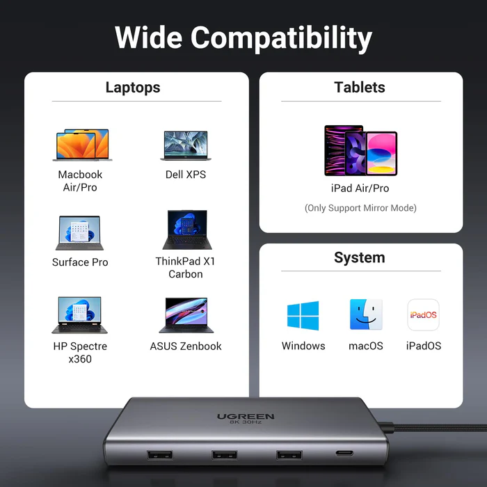 The UGREEN 15534 10-in-1 USB-C Multifunction Adapter is a premium all-in-one docking solution designed to maximize productivity and connectivity for modern USB-C laptops, tablets, and ultrabooks. With an extensive selection of ports, this adapter transforms a single USB-C port into a powerful workstation suitable for professionals, creators, and power users.