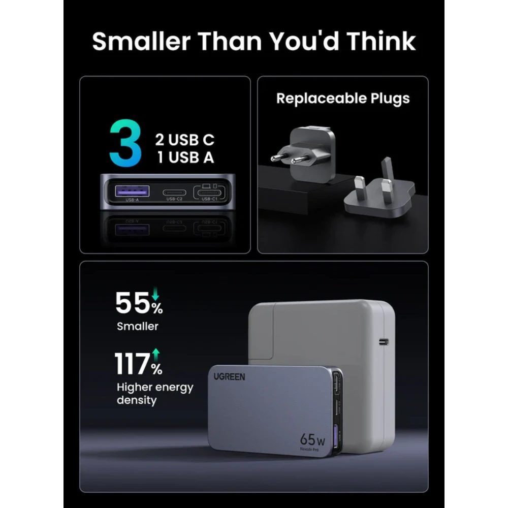 UGREEN 15816 65W 3-PORT GAN ULTRA-THIN FAST CHARGE...