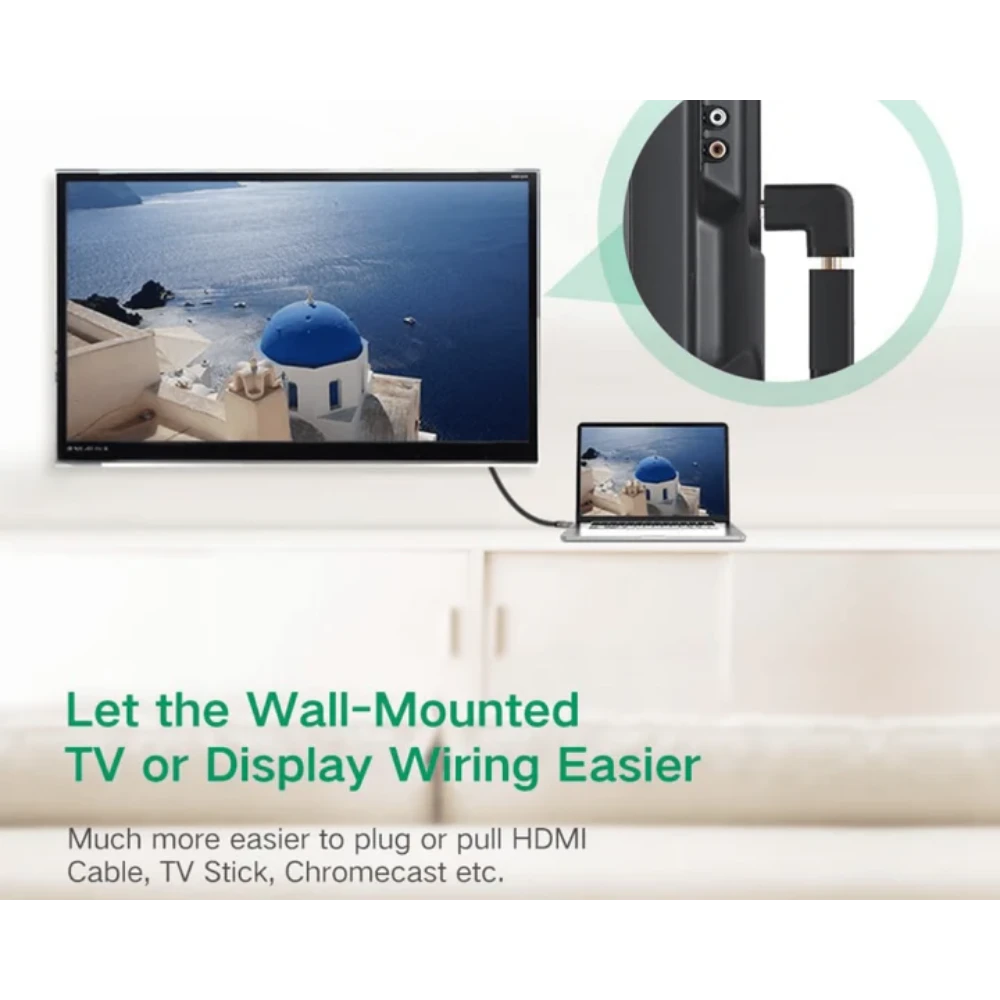 The UGREEN 20109 HDMI Male to Female Down Angle Adapter is the ideal solution for creating cleaner, safer, and more efficient cable management in tight or hard-to-reach spaces. Designed with a 90-degree downward angle, this adapter allows you to redirect your HDMI connection without bending or damaging your cable—perfect for wall-mounted TVs, monitors positioned close to walls, and compact media setups.