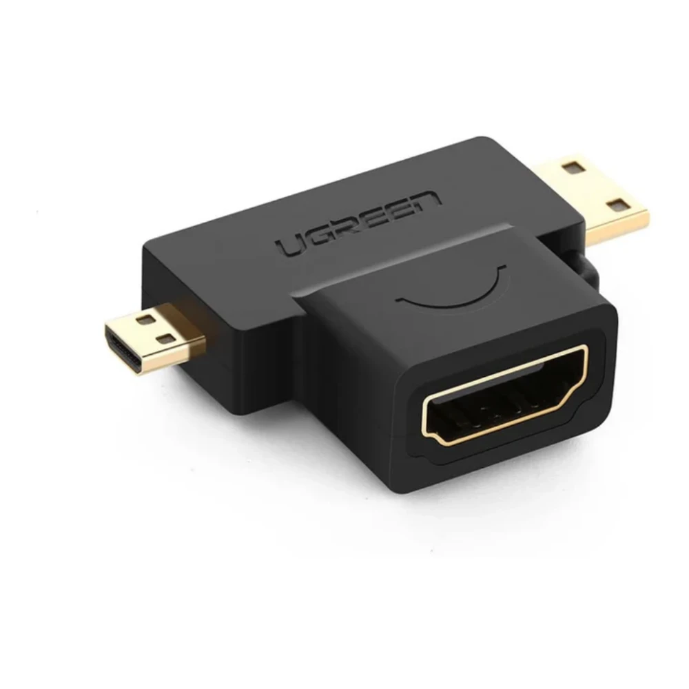 The UGREEN 20144 Micro + Mini HDMI to HDMI F/M Adapter is a compact and versatile solution designed to connect devices with Micro HDMI or Mini HDMI ports to standard HDMI cables. Perfect for cameras, tablets, laptops, projectors, and monitors, this adapter ensures stable and high-quality digital audio and video transmission.