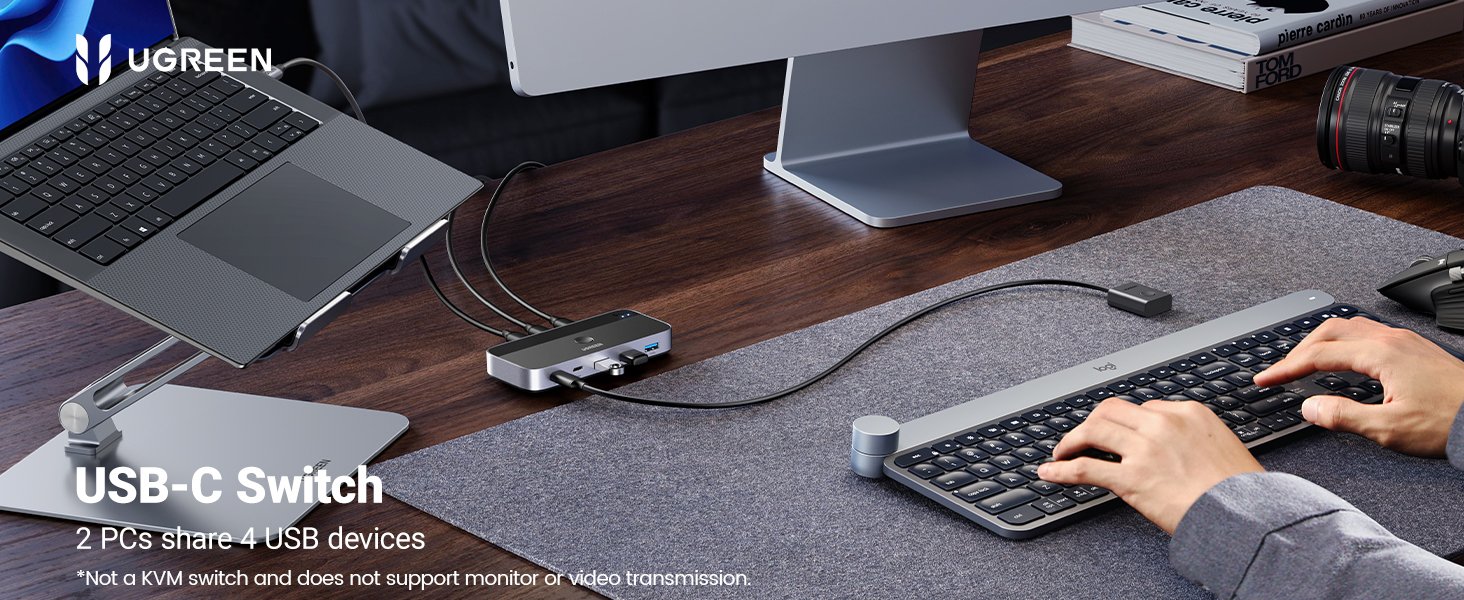 The UGREEN 25098 USB-C Switch Selector is a smart solution for sharing multiple USB devices—such as keyboards, mice, webcams, or printers—between two computers. With its 2-in-4-out USB 3.0 hub design, it allows seamless switching between PCs without the hassle of constantly unplugging and reconnecting devices.