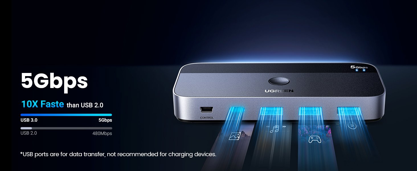 Featuring USB 3.0 high-speed data transfer up to 5Gbps, the switch ensures smooth operation of peripherals and fast file transfer. The intuitive push-button switch lets you toggle between connected computers instantly, improving productivity for home offices, gaming setups, and professional workstations.