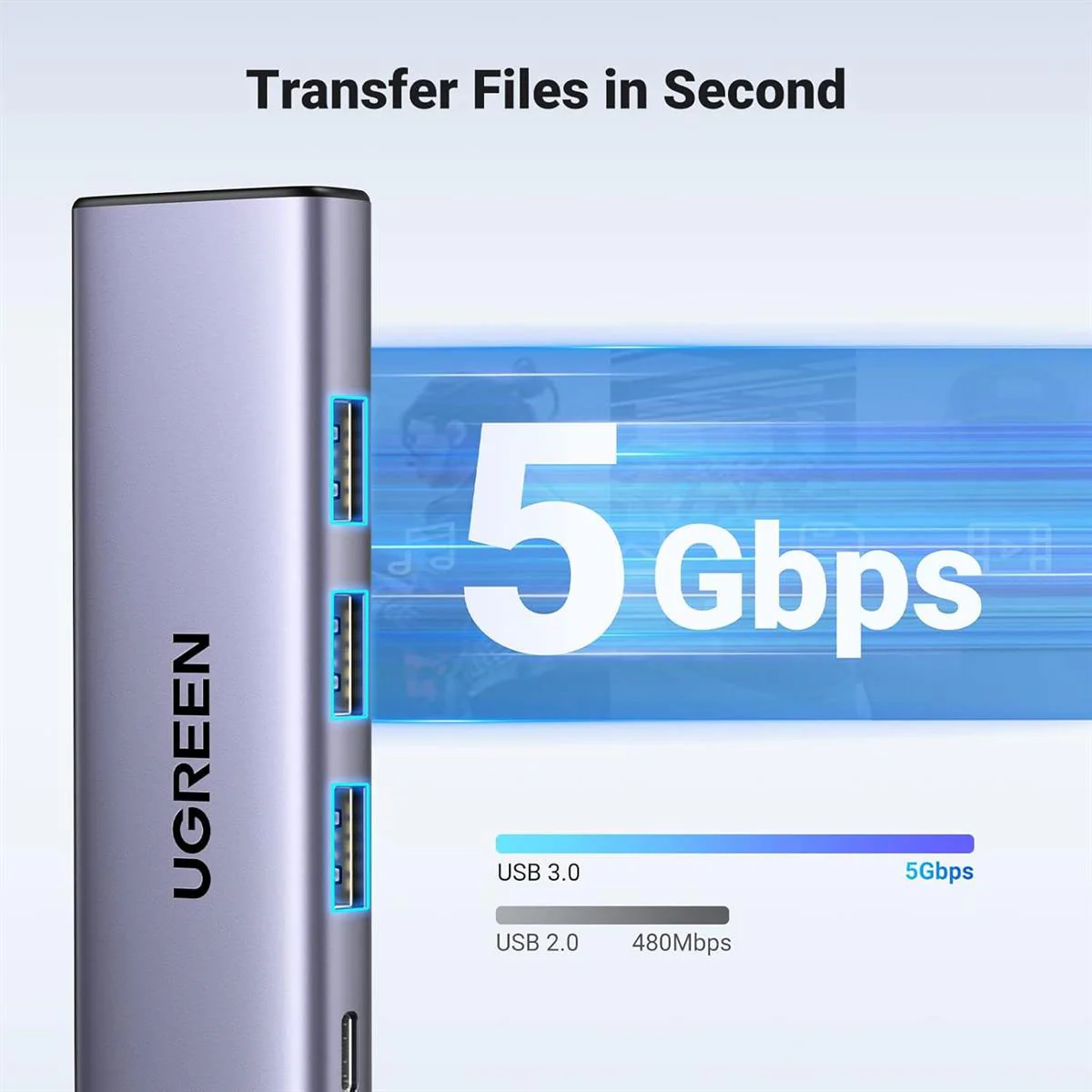 UGREEN 25101 5-IN-1 USB-C TO 8K@30HZ HDMI, 3XUSB-A...