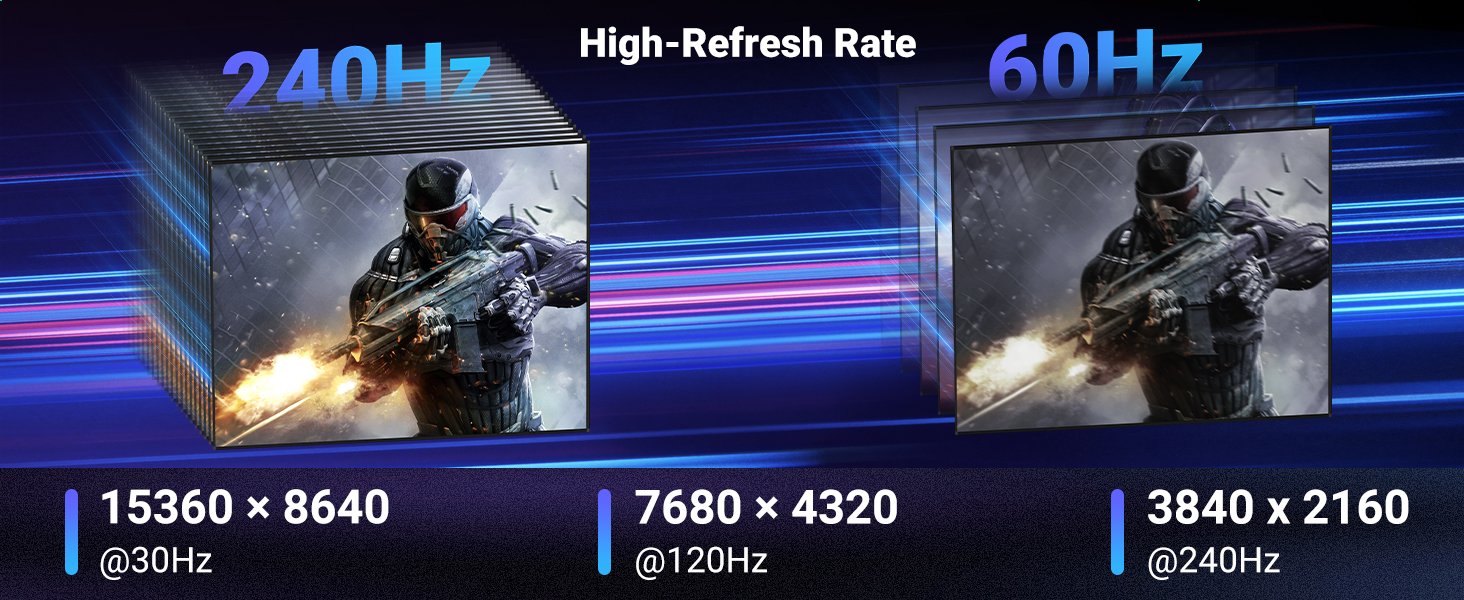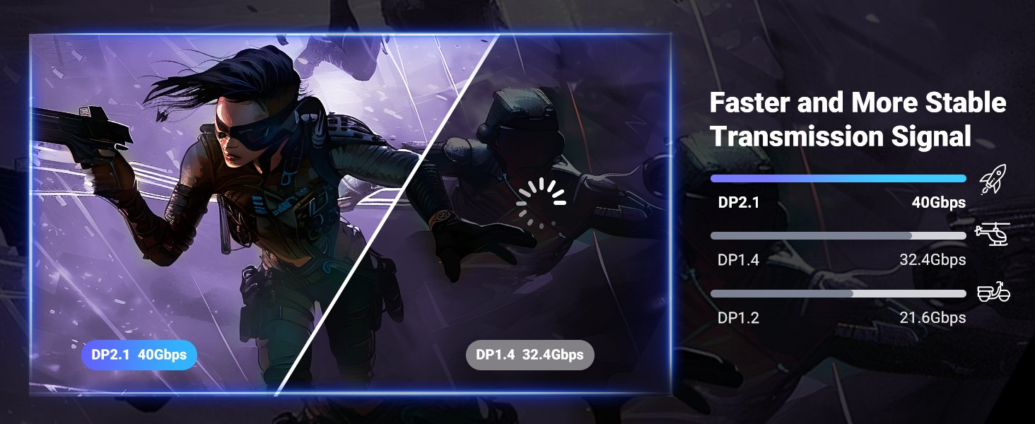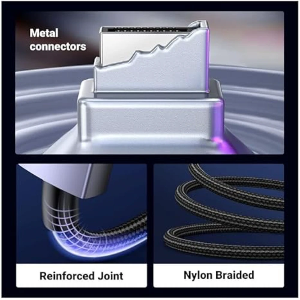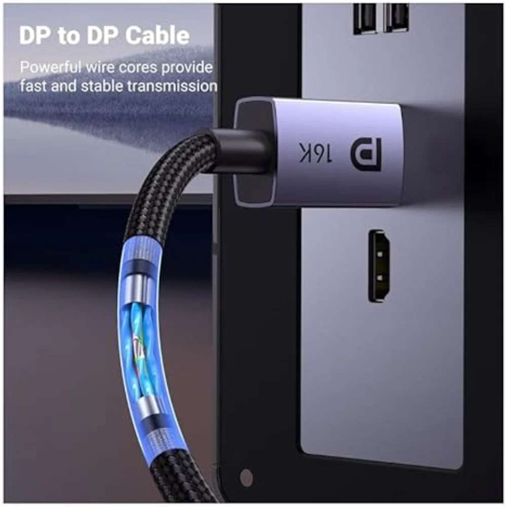With support for DisplayPort 2.0/1.4 standards, the cable delivers ultra-high bandwidth for high refresh rates, enabling stunning visuals at 16K, 8K, and 4K resolutions. It ensures lag-free performance with sharp details and accurate color reproduction.