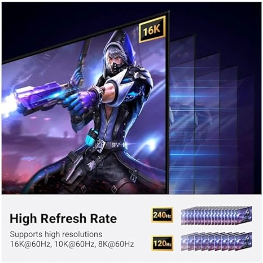 The UGREEN 25862 DisplayPort 16K Cable is engineered for ultra-high-resolution performance, delivering exceptional clarity, smooth visuals, and reliable signal transmission. Designed to support up to 16K resolution, this cable is perfect for high-end gaming, professional graphics work, video editing, and advanced workstation setups.