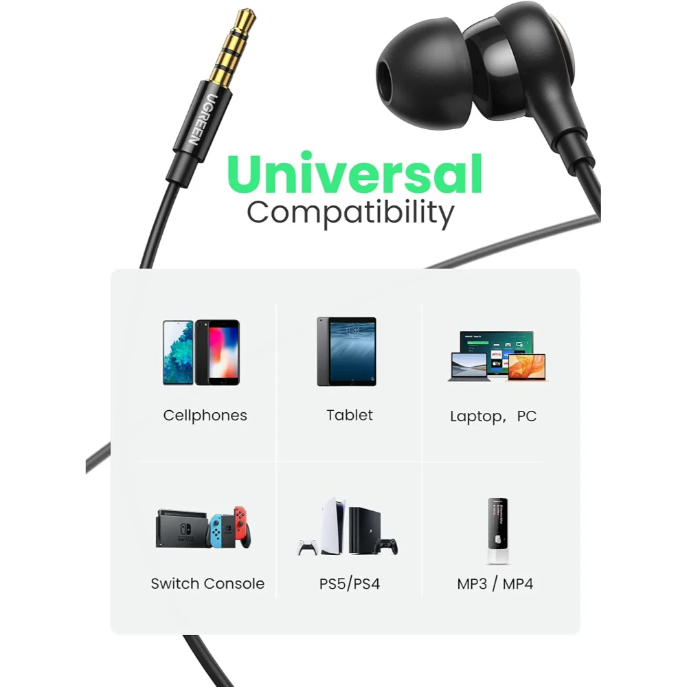 The UGREEN 30637 In-Ear Earphones with 3.5mm Plug provide a high-quality audio experience for smartphones, tablets, laptops, and other devices with a standard headphone jack. Engineered with premium audio drivers, they deliver crisp highs, rich mids, and deep bass for music, podcasts, gaming, and calls.