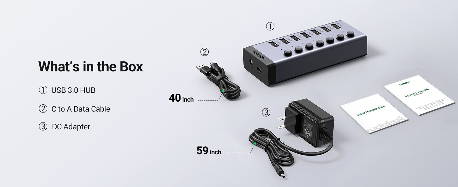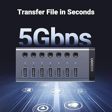 The UGREEN 7-in-1 USB 3.0 Hub is the ultimate solution for expanding connectivity and charging capabilities on your laptop or desktop PC. Equipped with 7 high-speed USB 3.0 ports, it allows you to connect multiple devices such as keyboards, mice, printers, U-disks, card readers, hard drives, cameras, speakers, and more simultaneously.