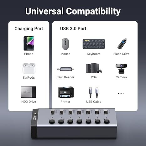 The UGREEN USB 3.0 Hub is widely compatible, plug-and-play, and driver-free for Windows, macOS, UNIX, and Linux systems. It is the perfect accessory to enhance productivity and streamline your workstation.