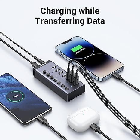 In addition, this hub features 4 smart charging ports that automatically detect your device’s charging protocol to deliver the optimum power, ensuring fast and safe charging for smartphones, tablets, USB fans, earphones, and other gadgets. The fast and stable data transfer supports speeds up to 5 Gbps, letting you transfer HD movies or large files in seconds.