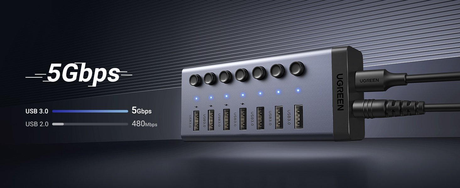 With an external 12V/2A power supply, you can connect multiple high-power devices without worrying about stability. Each port comes with an individual switch and LED indicator, allowing you to turn devices on or off independently and monitor their status easily.