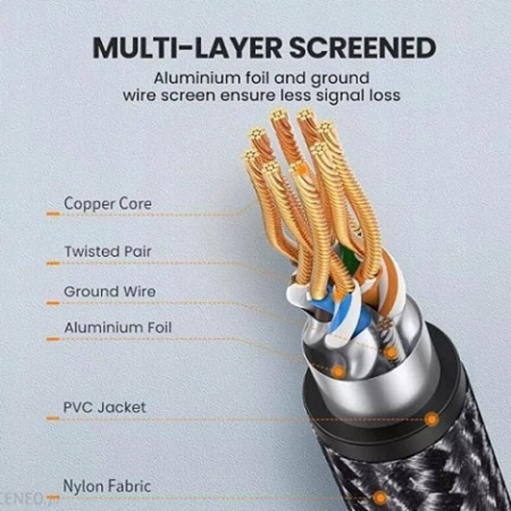 The UGREEN 30795 CAT8 Pure Copper LAN Cable (10 Meter, Braided) is a next-generation, ultra-high-speed Ethernet cable engineered for maximum performance, stability, and durability. Designed for gaming enthusiasts, professional networking, data centers, smart homes, and high-bandwidth applications, this CAT8 cable delivers exceptional speed and reliability far beyond standard Ethernet cables.
