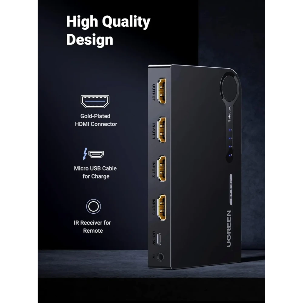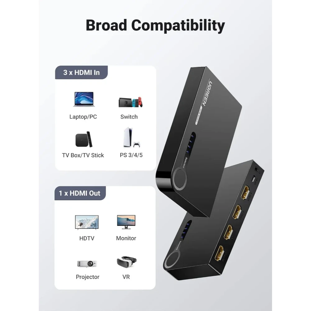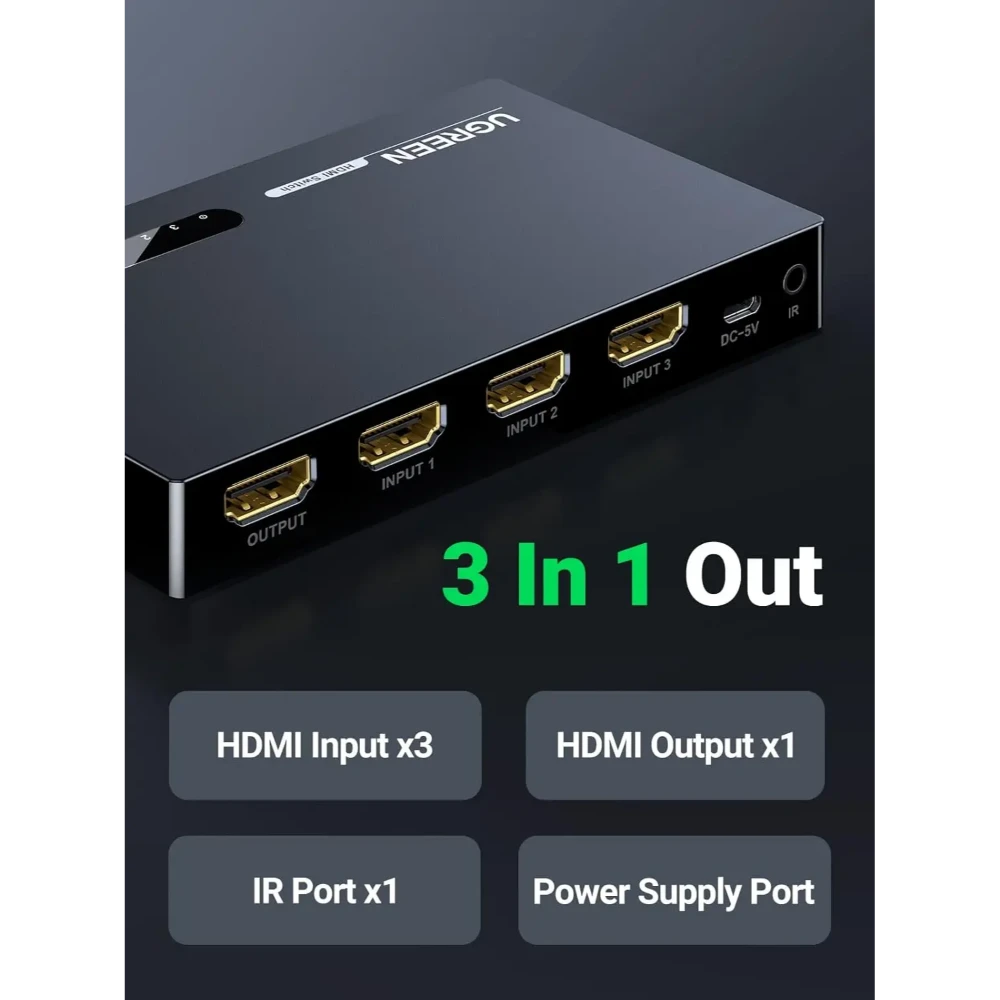 Whether for gaming, streaming, or professional presentations, the UGREEN 40234 HDMI Switch offers convenient multi-source management with reliable high-definition performance.