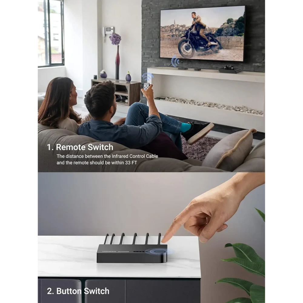 Supporting 4K Ultra HD resolution, the UGREEN 40234 ensures crisp, vibrant visuals and high-quality digital audio across all connected devices. Its compact and durable design fits seamlessly into any setup, while the intuitive manual button allows quick switching between devices.