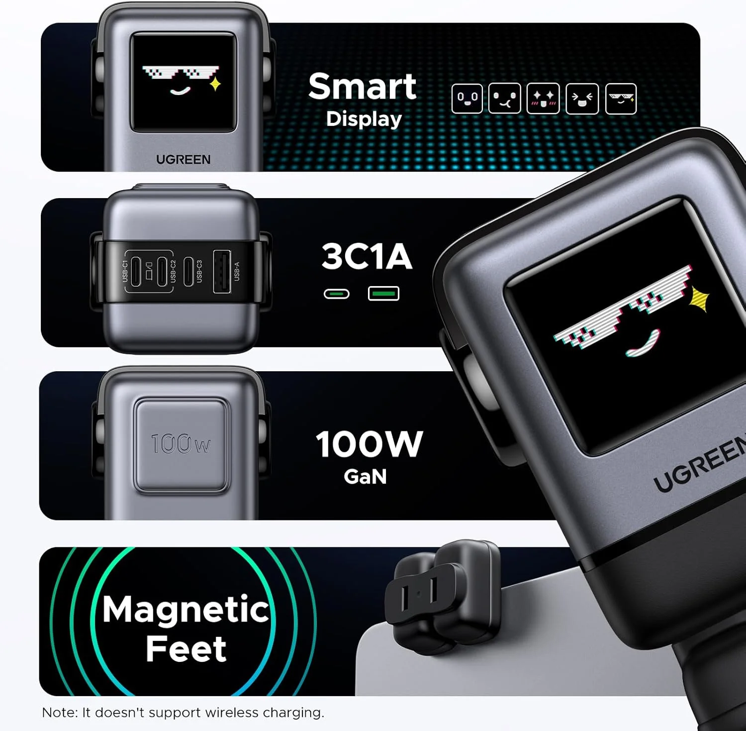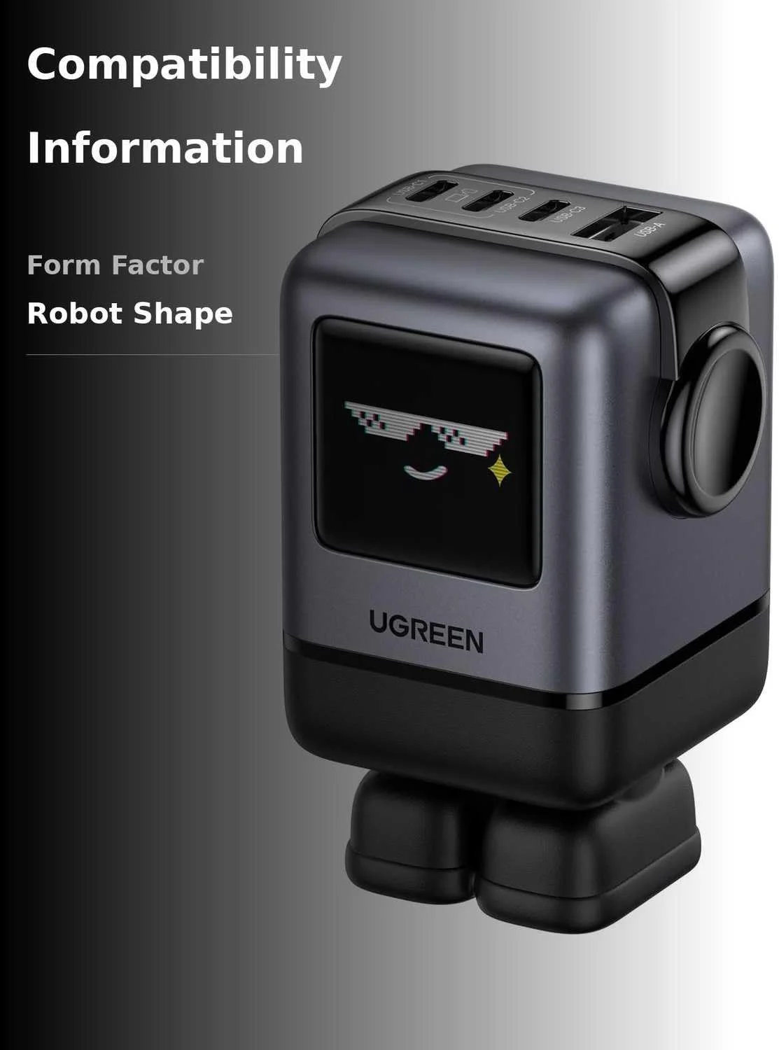 The UGREEN 45514 UNO 100W 4-Port Robot GaN Fast Charger is a cutting-edge charging solution designed for high-speed power delivery across multiple devices. Featuring a fun and futuristic robot-style design, this compact charger combines style, power, and efficiency, making it perfect for tech enthusiasts, professionals, and travelers.