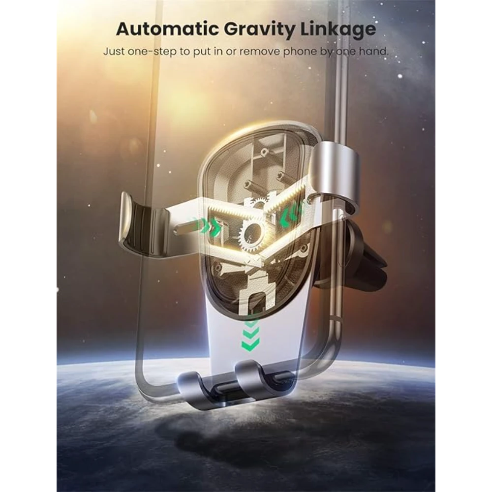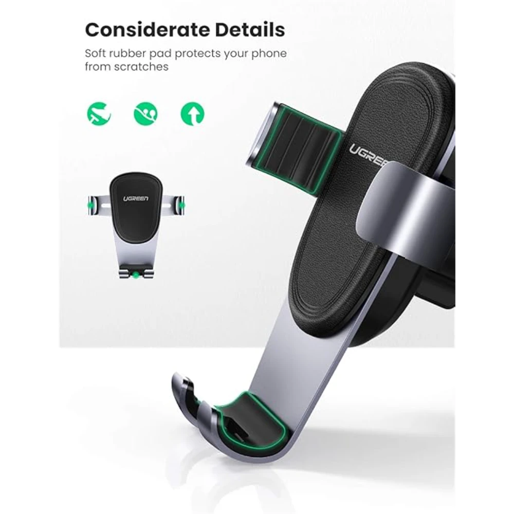 The UGREEN 50565 Gravity Air Vent Car Phone Holder is a smart and stable solution for hands-free smartphone use while driving. Designed with an automatic gravity-lock mechanism, this car phone mount securely grips your phone using its own weight—simply place your phone in the holder and it locks automatically, allowing for quick one-hand operation.