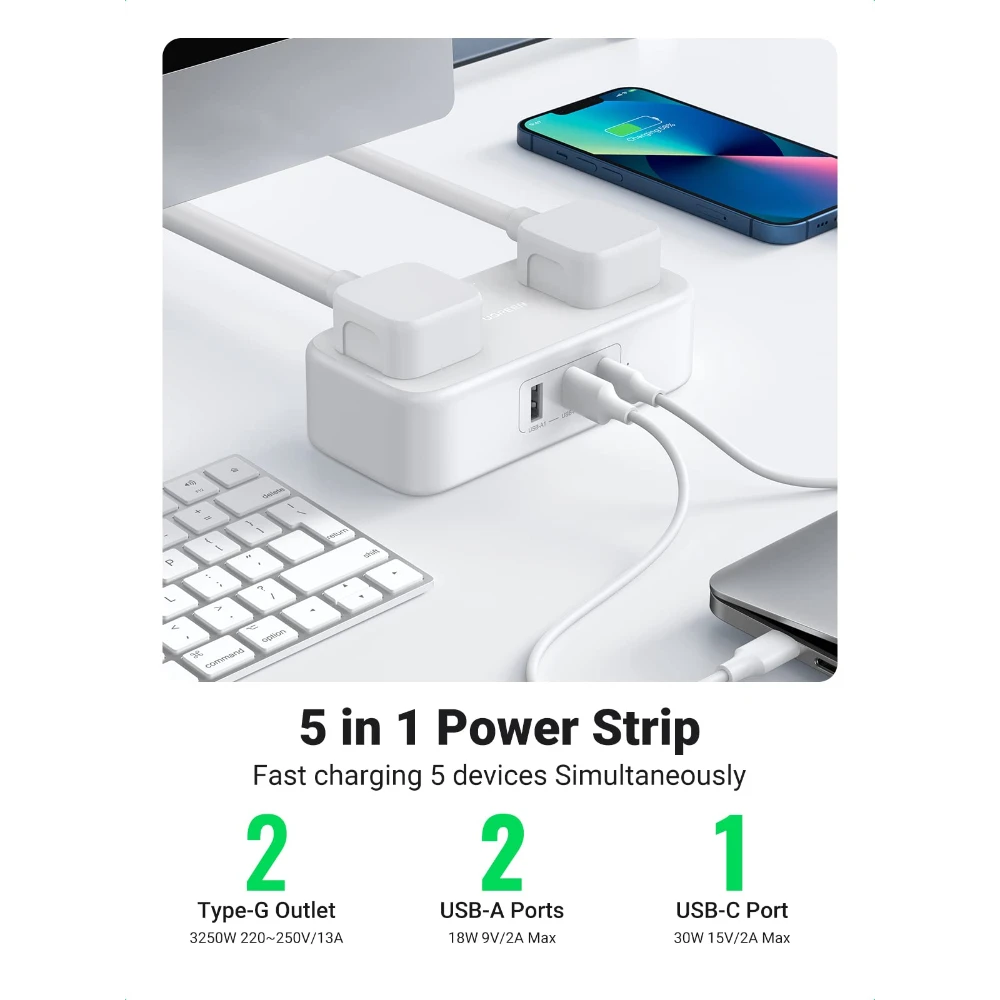 The UGREEN 50686 30W DigiNest Life Power Extension (1.8 Meter) is a smart and modern power solution designed to keep your devices charged safely and efficiently. Combining traditional power outlets with USB fast charging, this power extension is ideal for homes, offices, and workstations that require reliable power distribution and charging convenience.