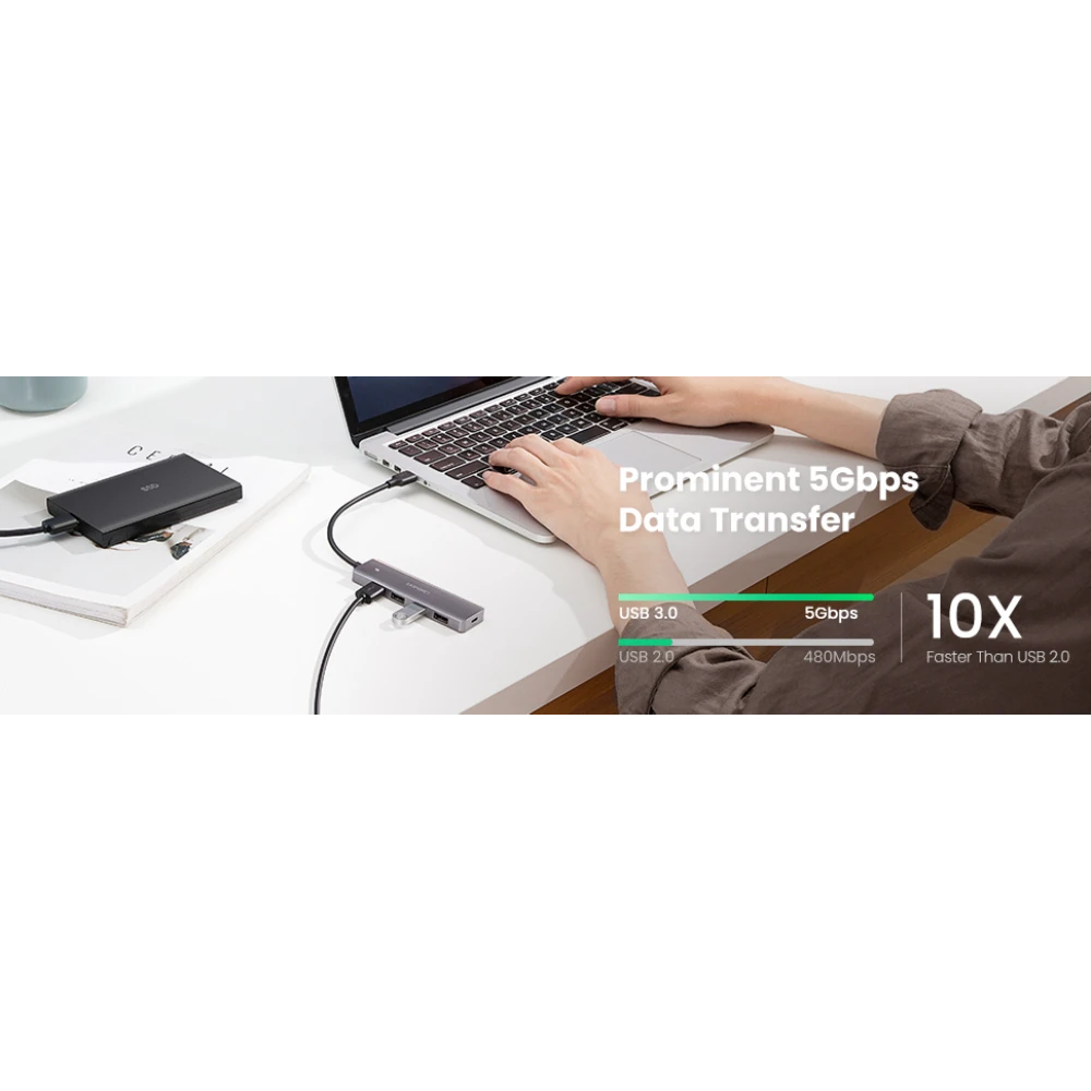 The UGREEN 50985 4-Ports USB 3.0 Hub with USB-C Power Supply is perfect for anyone looking to expand USB connectivity while maintaining power stability, offering speed, convenience, and versatility in one compact device.