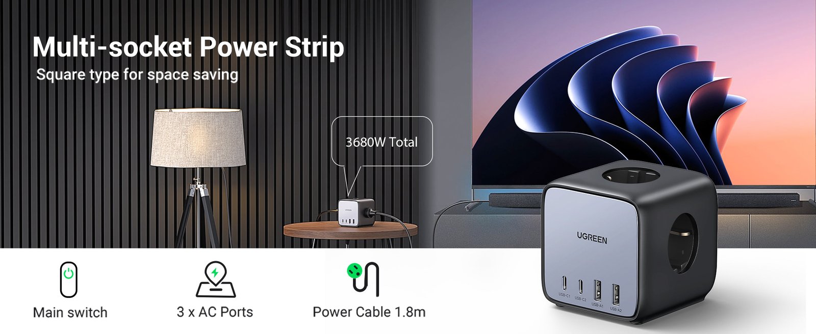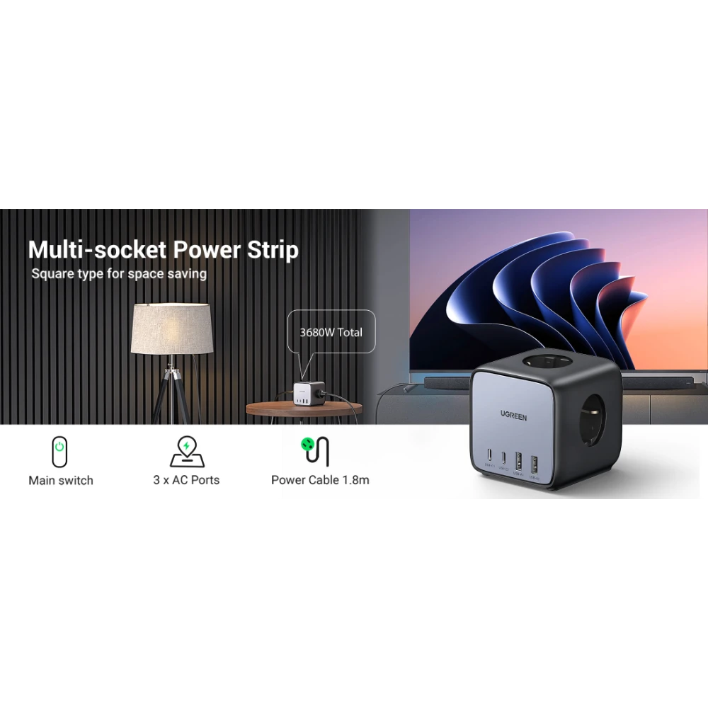 The UGREEN 60113 65W DigiNest Cube Power Charging Station (2C2A, 1.8 Meter) is a powerful and compact charging solution designed for modern homes, offices, and workspaces. Featuring a smart cube design, it maximizes space efficiency while providing reliable power distribution and fast charging for multiple devices at the same time.