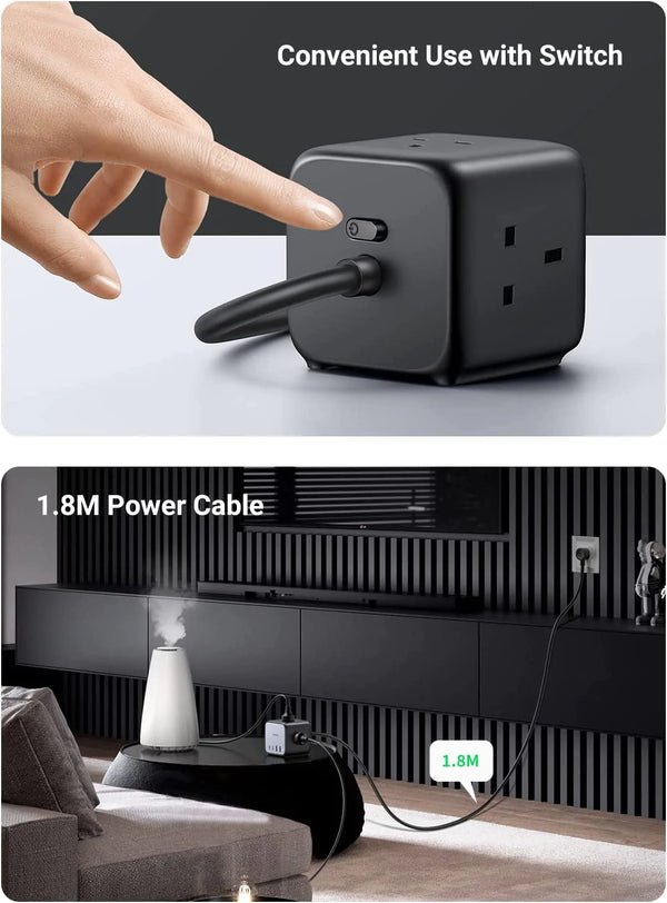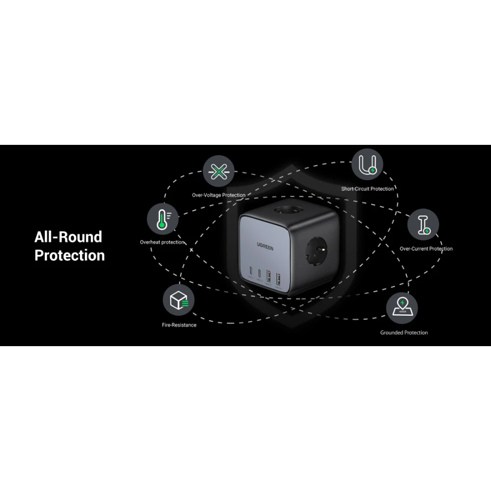 The 1.8-meter heavy-duty power cable offers flexible placement on desks, floors, or bedside tables. Built with advanced safety protections including over-current, over-voltage, overload, short-circuit, and temperature protection, the DigiNest Cube ensures safe and reliable charging for all connected devices.