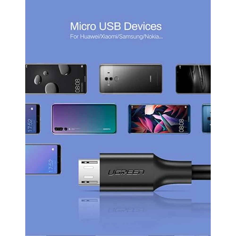 The UGREEN 60143 USB-A to Micro USB Cable 2m (White) is a reliable charging and data sync cable designed for devices that use a Micro USB interface. It supports stable power delivery and efficient data transfer, making it ideal for smartphones, power banks, Bluetooth speakers, cameras, and other Micro USB devices.