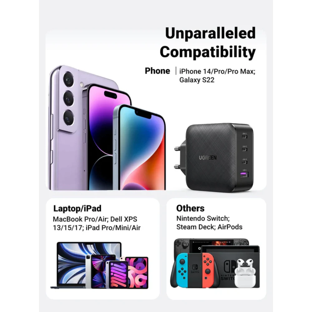 Designed with portability in mind, the UGREEN 70774 is ideal for home, office, or travel. It also features built-in multi-layer protection, including over-voltage, over-current, short-circuit, and temperature safeguards, ensuring your devices stay safe while charging.