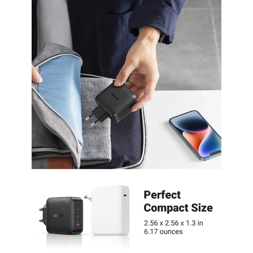 The UGREEN 70774 GaN X PD Fast Charger 65W is a high-performance charging solution built for modern devices, combining speed, efficiency, and safety in a compact form factor. Utilizing advanced GaN X (Gallium Nitride) technology, this charger delivers faster charging, reduced heat generation, and a smaller footprint compared to traditional chargers.