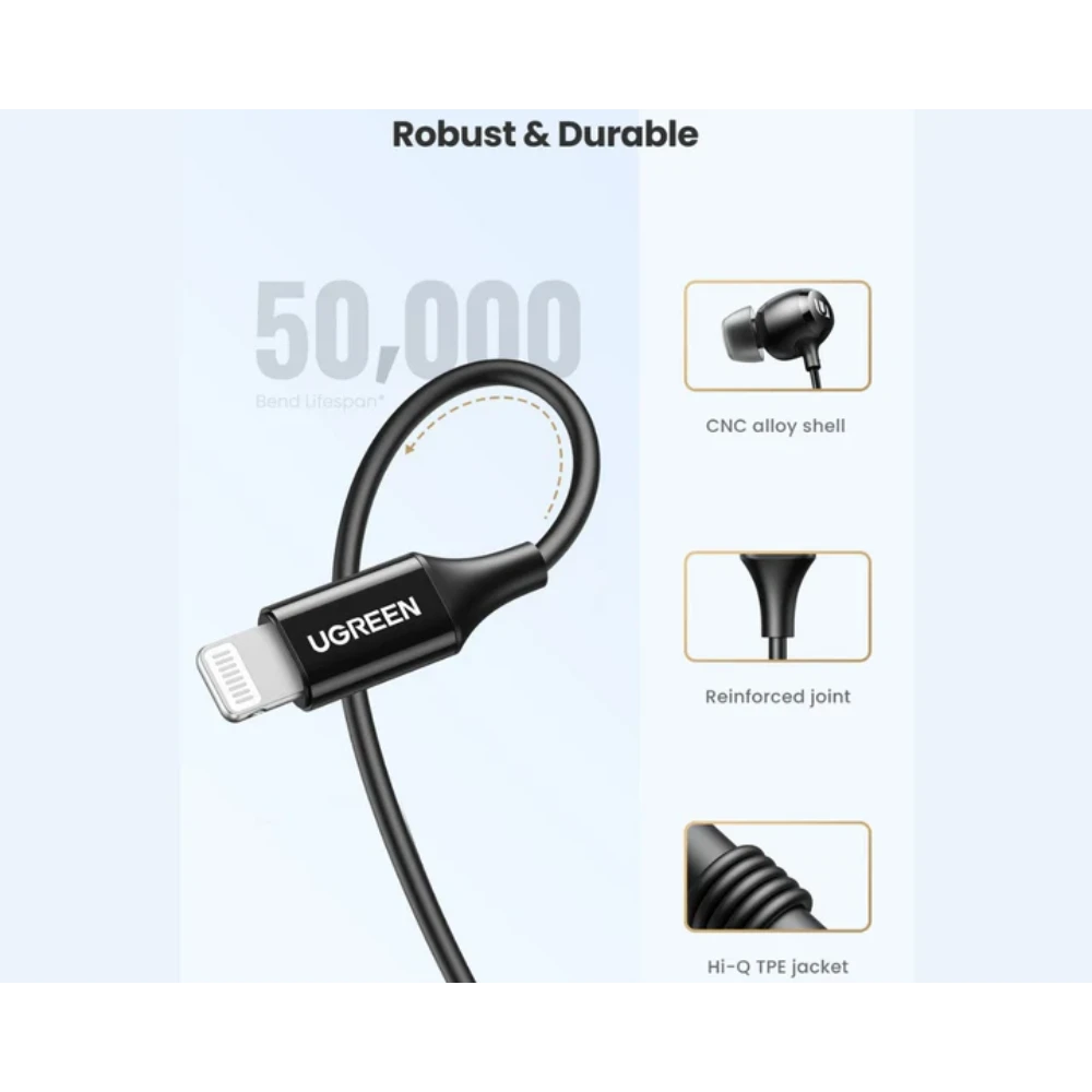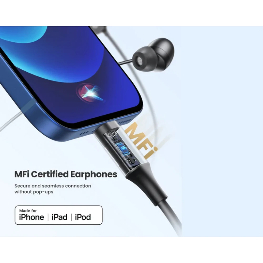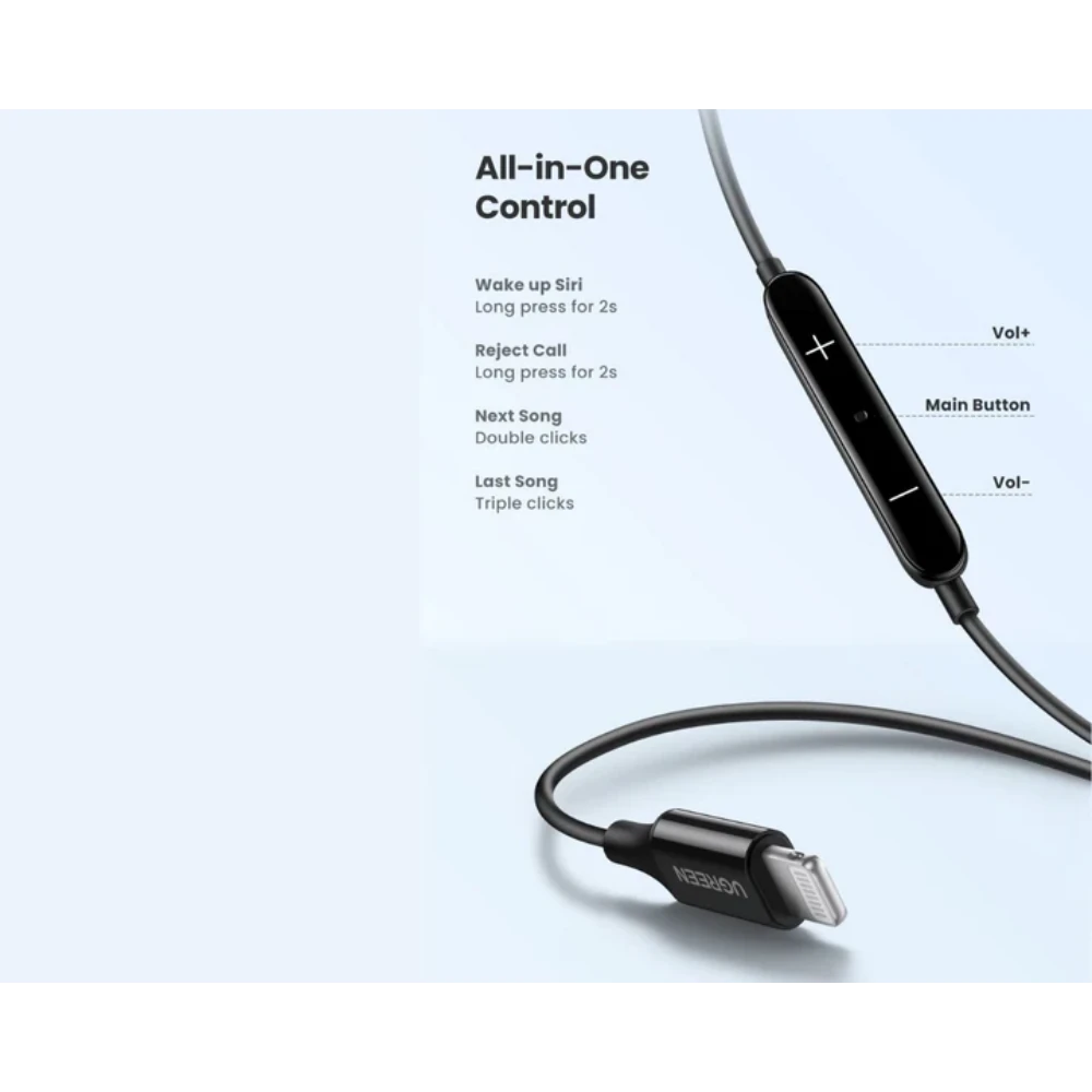 The UGREEN 80655 In-Ear Earphones with Lightning Connector deliver high-quality audio and a comfortable listening experience for Apple devices with a Lightning port. Engineered with precise audio drivers, these earphones provide clear highs, rich mids, and deep bass, making them ideal for music, podcasts, and calls.