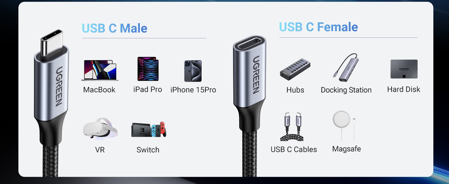 The UGREEN 80810 USB 3.1 Type-C Extension Cable is designed to extend the reach of your USB-C connection while maintaining fast and stable performance. With a 0.5-meter length, it provides added flexibility for charging, data transfer, and device connectivity without signal loss.