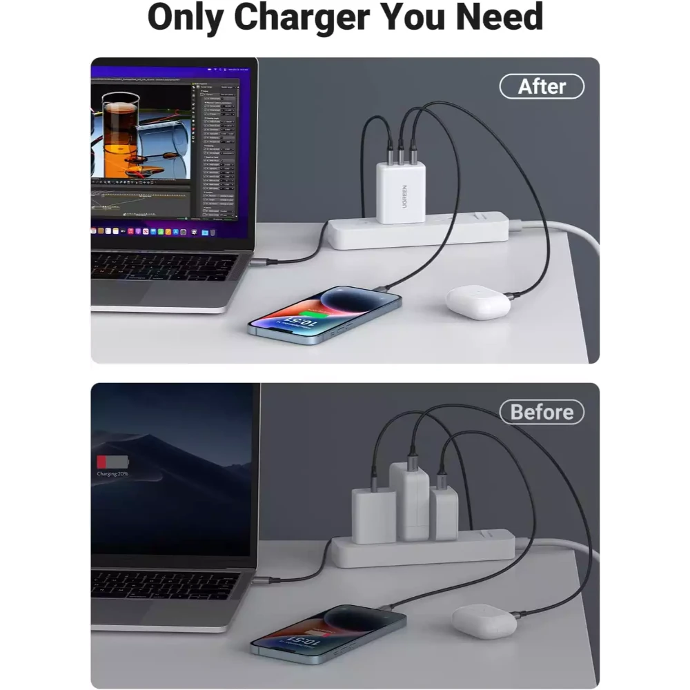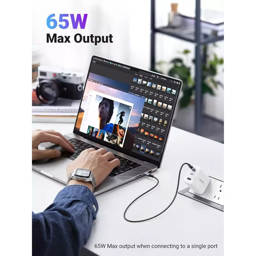 The UGREEN 90495 65W Fast Charger is a sleek and powerful charging solution designed for fast, efficient, and safe charging of multiple devices. Featuring advanced GaN (Gallium Nitride) technology, this charger delivers higher energy efficiency, less heat, and a compact form factor, making it perfect for home, office, or travel use.