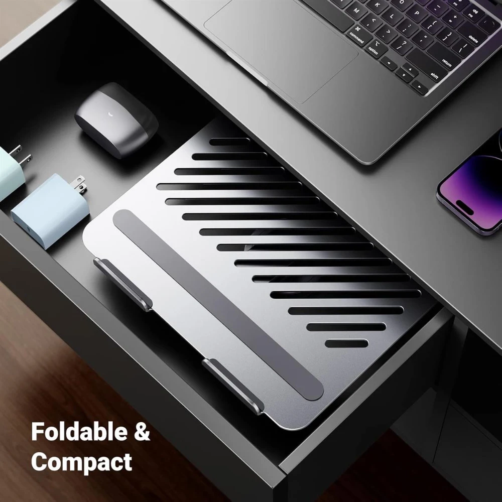 Its ergonomic elevated design helps improve posture by raising your laptop to eye level, reducing neck and shoulder strain during long working hours. The adjustable structure allows smooth angle and height adjustments to suit different tasks such as typing, video calls, studying, or watching content.