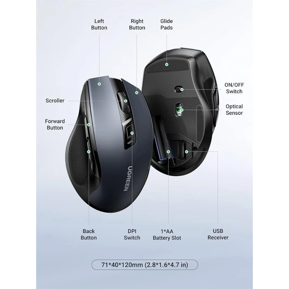 The UGREEN 90855 Ergonomic Wireless Mouse combines comfort, versatility, and precision, making it an excellent choice for users who demand performance without sacrificing ergonomics.