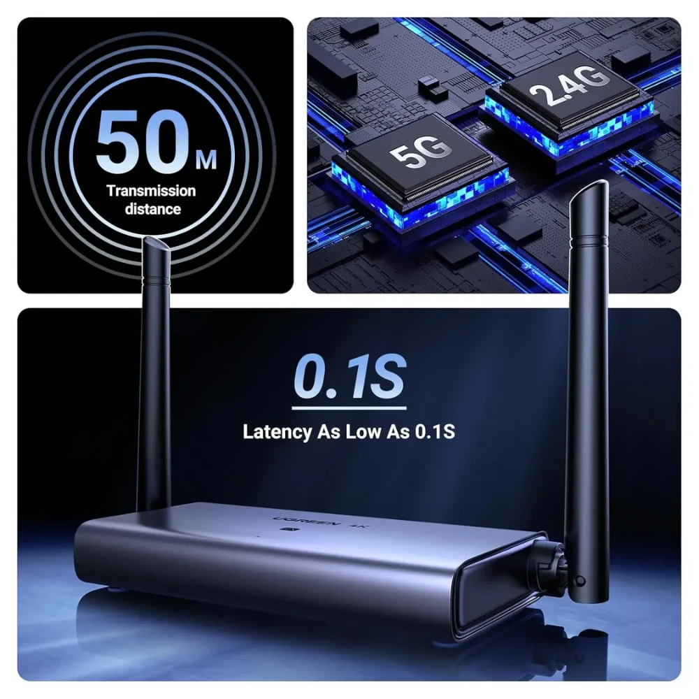 The UGREEN 90909A Wireless HDMI Transmitter and Receiver delivers a convenient and cable-free solution for transmitting high-definition video and audio from your HDMI source to a display. Designed for home entertainment, office presentations, classrooms, and conferences, it enables seamless wireless screen sharing without the need for long HDMI cables.