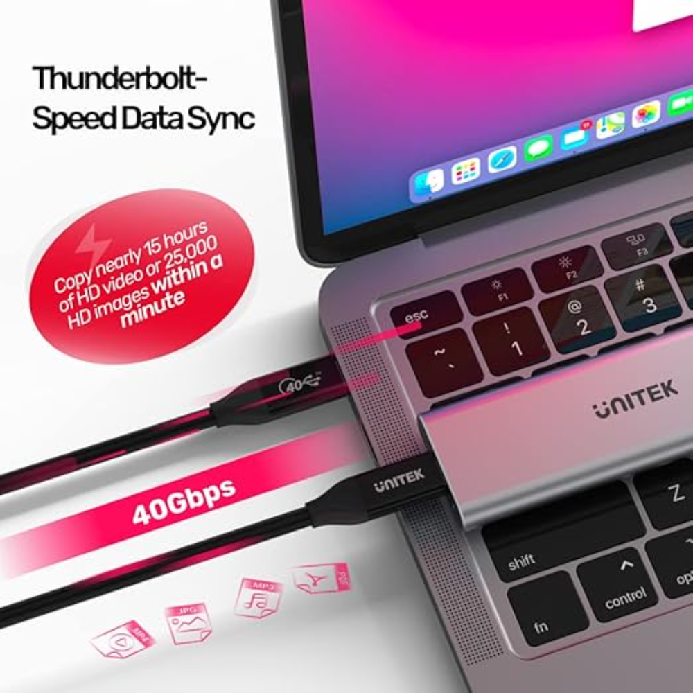 The UNITEK C14100BK USB4 Thunderbolt 3 USB-C to USB-C Cable (0.8M) is a high-performance solution designed for professionals and tech enthusiasts who demand speed, power, and clarity. Supporting the latest USB4 standard, this cable delivers ultra-fast data transfer speeds of up to 40Gbps, making it ideal for transferring large files, connecting external SSDs, and high-end peripherals.
