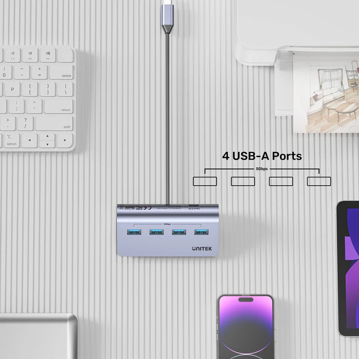 Crafted with a sleek, durable casing and a lightweight travel-friendly design, the UNITEK uHUB Q4 is ideal for office use, home setups, study areas, and mobile productivity. It is fully plug-and-play, requiring no drivers for most operating systems, making it a convenient and versatile solution for expanding your workspace.