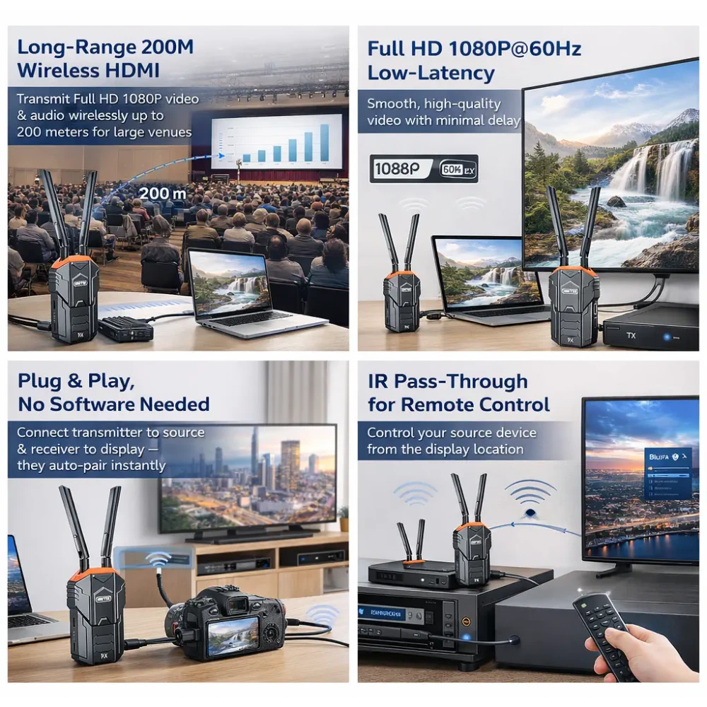 The UNITEK V176A-RX Wireless HDMI Receiver is designed to deliver high-definition video and audio transmission over long distances without the clutter of cables. With support for 1080p at 60Hz and a wireless range of up to 200 meters, this receiver ensures smooth, lag-free streaming for presentations, media rooms, or home theaters.