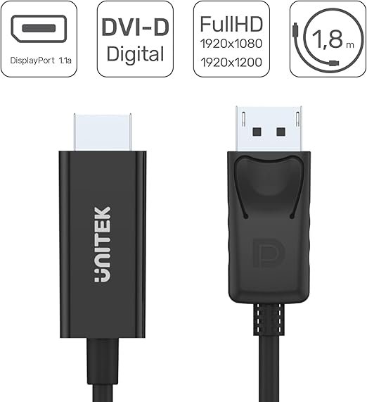 Effortlessly connect your DisplayPort-equipped devices to HDMI displays with the UNITEK DisplayPort to HDMI Cable Adapter.