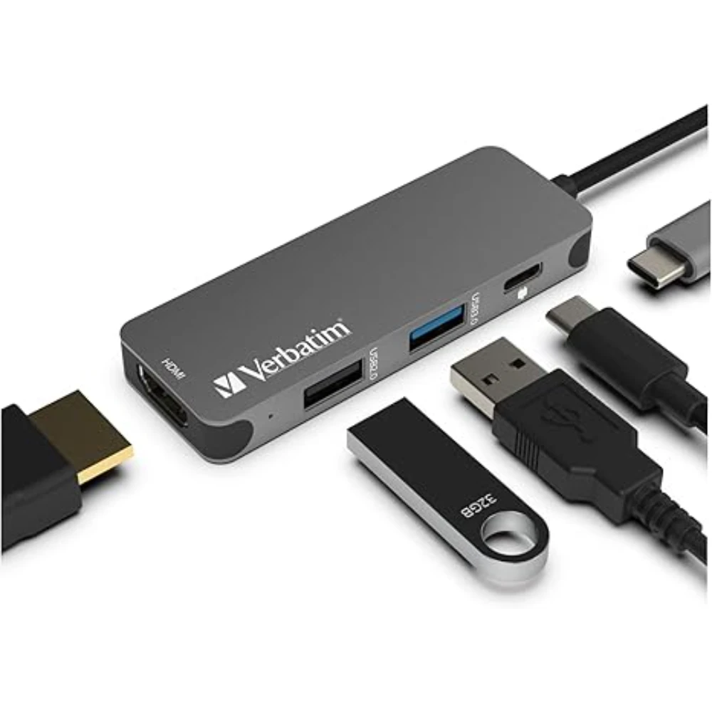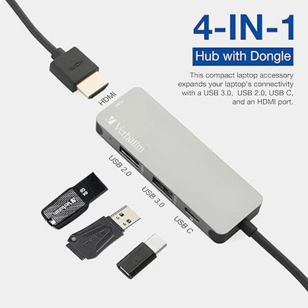 The Verbatim VUC-2041D 4-in-1 USB-C Hub is a powerful and compact expansion solution designed for modern laptops, tablets, and USB-C devices. Featuring four essential ports in one hub, it allows you to connect multiple peripherals while maintaining efficient power delivery through a single USB-C port.